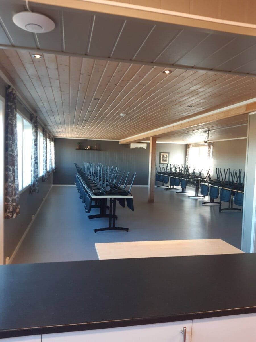 Selskapslokale til leie i klubbhusets 1.etg. (nyoppusset våren 2022) Lokalet er egnet for 40-45 gjester. Alt av dekketøy på kjøkkenet. Nytt inngangsparti med garderobe.
